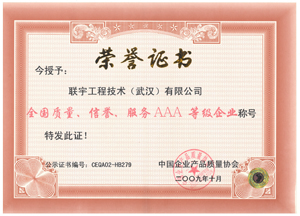 联宇被授予“全国质量、信誉、服务AAA等级企业”称号 |