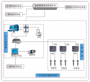 实现对大坝的自动监测、对监测到的实时数据和人工观测的数据实现自动分析和人工干预反馈,准确地描述大坝的整体性状,对大坝安全监测实现采集数据的保存、检验、整编、分析和辅助决策,将相关信息进行发布供工作人员浏览,实时监测大坝运行状况,给决策提供科学依据,确保大坝安全。 本系统适用于大中小型水库的大坝安全监测,也可用于干堤、渠道等的安全监测。 系统总体结构图